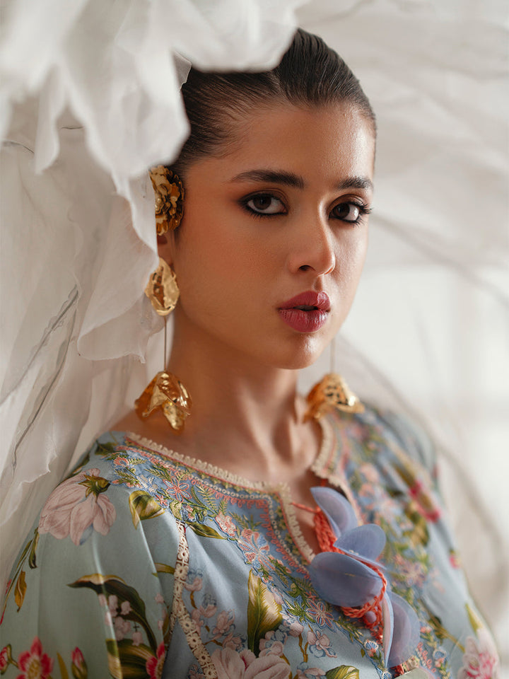 Shirt Viscous Printed Shirt 3 Meter Embroidered Neck On Dyed Organza 1 Piece Embroidered Daman Motif On Dyed Organza 1 Piece Embroidered Sleeves Lace On Dyed Organza 1 Meter Dupatta Digital...