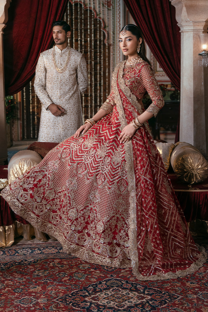 Description: Embroidered net with handmade embellishment for front yoke Embroidered net back yoke Embroidered net panels for front & back Embroidered net with handmade embellishment for sleeves Embroidered net dupatta Embroidered...
