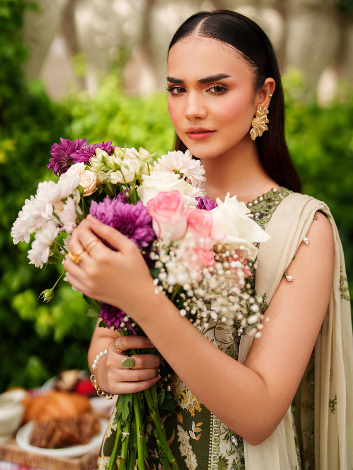 Description: Shirt Printed Viscos Shirt (3.00 Meters) Embroidered Neckline (1 Pc) Embroidered Front Border (0.80 Meter) Embroidered Sleeve Patch (2 Pc) Dupatta Embroidered Chiffon Dupatta (2.50 Meters) Trouser Printed Viscose Trouser...