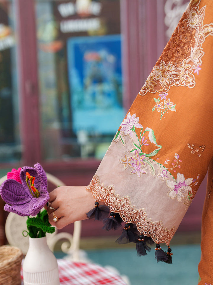 Description: Shirt Printed Viscose Front & Back (3.00 Meters) Printed Embroidered Viscose Sleeves (0.65 Meter) Embroidered Neckline (1 Pc) Embroidered Front Lace (0.80 Meter) Embroidered Sleeve Patch (2 Pc) Embroidered Sleeve...