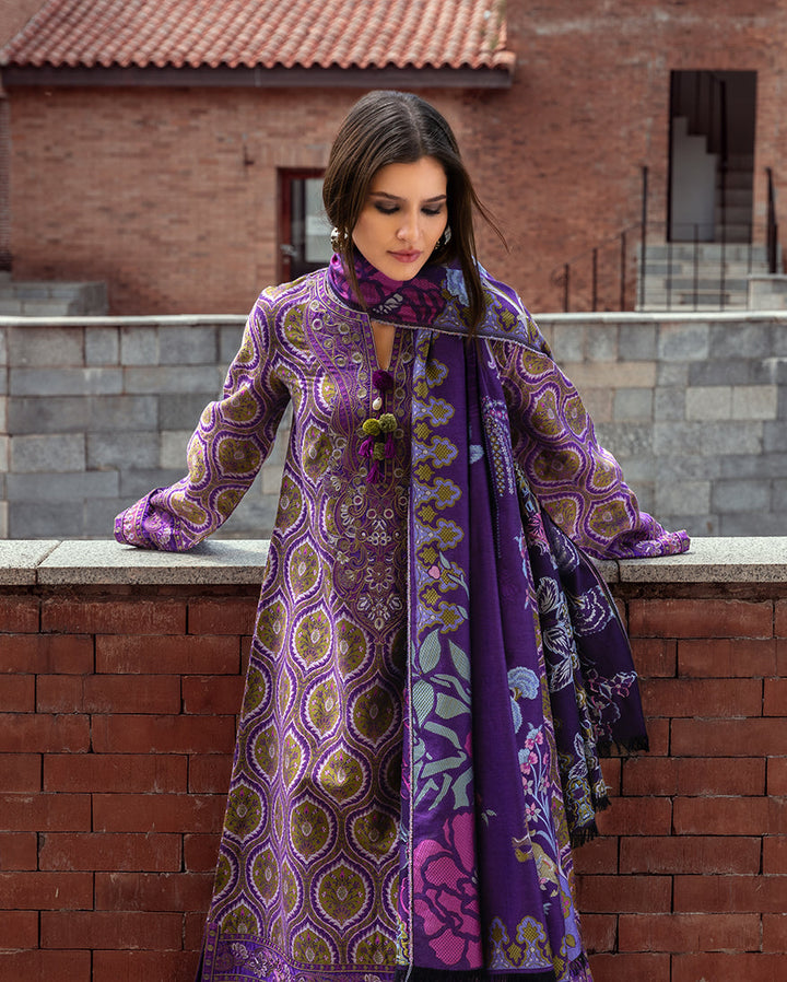 Description: Shirt:• Jacquard viscose front & sleeves• Jacquard viscose back• Embroidered front neckline (silk) • Embroidered front & back daman border (silk)• Embroidered sleeves border (silk)• Embroidered finishing lace (silk) 1• Embroidered finishing lace (silk)...