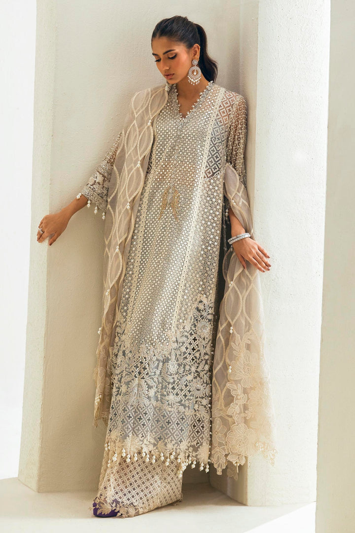 Front Panel Lace Sky Blue Organza | 2 Pieces |