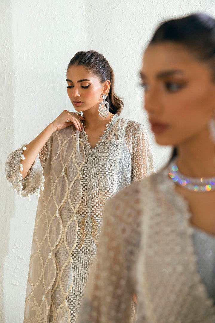 Front Side L&R Panels Hand Embellished Sky Blue Net | 2 Pieces |