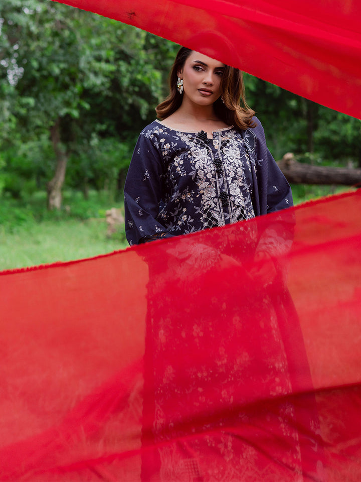 Description: Shirt Printed Khaddar Front & Back (2.5 Meter)Printed Khaddar Sleeves (0.60 Meter)Embroidered Neckline (1 Pc)Embroidered Front Daman (1 Pc)Embroidered Sleeve Border (0.90 Meter)Dupatta Printed Poly Wool Shawl (2.50 Meters) Trouser...